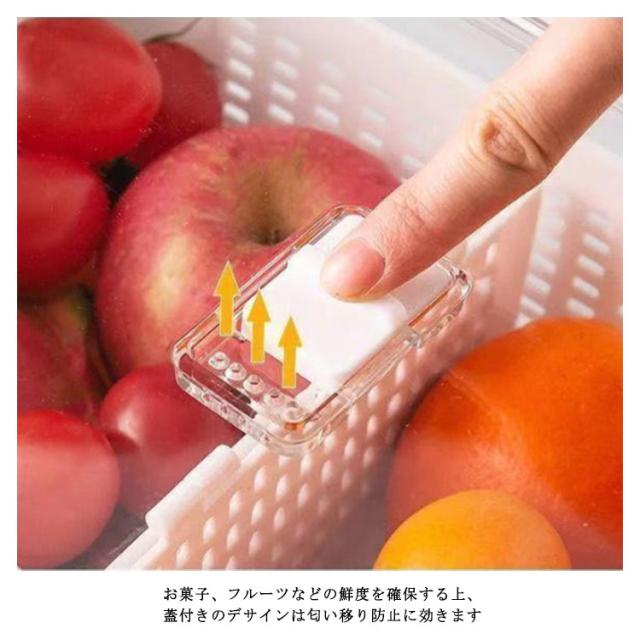 冷蔵庫収納 冷蔵庫トレー 収納ケース 冷蔵庫 収納ボックス クリア 透明 水切り付き ケース 蓋付き 仕切りボックス 冷蔵庫収納 水切りかご 通気穴付き 大容量 フルーツ保存 収納 果物 野菜 小物 整理 キッチン収納 食品保存容器
