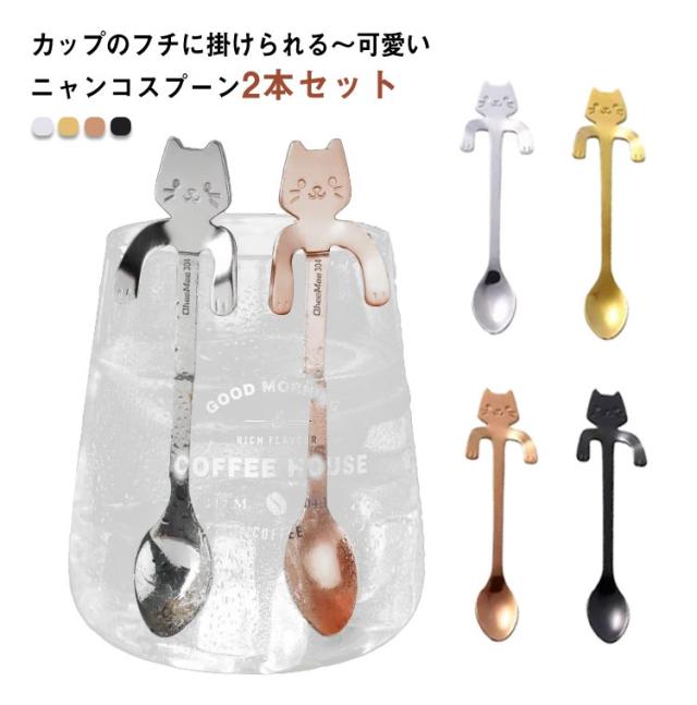 プレゼント 軽い 猫 雑貨 掛けられる かわいい ネコちゃん インスタ映え 業務用 コーヒースプーン 耐熱 ピクニック 飲食店 食器 カフェ カフェ風 ステンレス 雑貨 キッチン パーティー スプーンセット キャンプ お手入れ簡単 プチギフト 2本セット