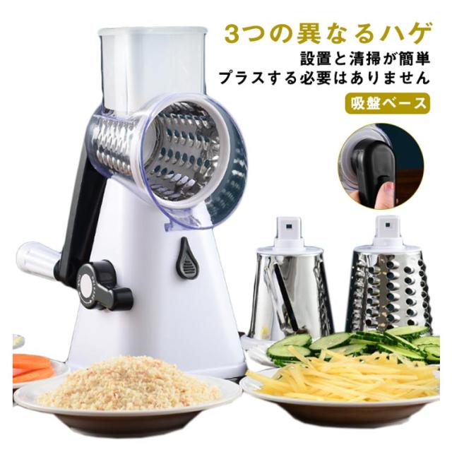 多機能スライサー 回転式 野菜スライサー 手動 千切り 3個刃 カッタースライサー マルチスライサー ぐるぐる スライサー ハンドル 回す 簡単 スライス セット 交換可能 キッチン用品 調理器具 便利&安全 清潔 時間節約 お手入れ簡単 家庭用 洗いやすい
