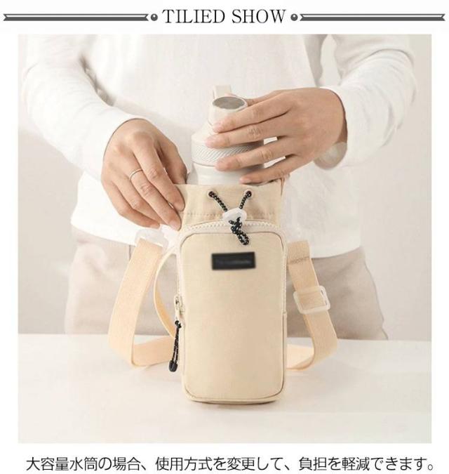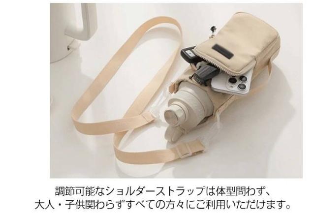 | ペットボトルホルダーの高さは23cm、底の直径は10cmで、口径が10以下のボトルに適しています。 また、調整可能な引き紐が付いているので、ボトルが揺れずにしっかり固定できます。 ペットボトルカバーは調節可能なショルダーストラップを付きます。 また、手で持ち運べる固定ハンドルストラップも追加しました。 大容量水筒の場合、使用方式を変更して、負担を軽減できます。 肩掛けや斜め掛けや手提げとしてお使いいただけます。 調節可能なショルダーストラップは体型問わず、大人・子供関わらずすべての方々にご利用いただけます。 ジッパー式の外ポケットは携帯電話、suica、鍵など普段持ち歩く小物を収納できます。 おしゃれなデザインで日常通勤通学やアウトドアなど、水筒やマイボトルを持ち歩くのは便利です。 | |