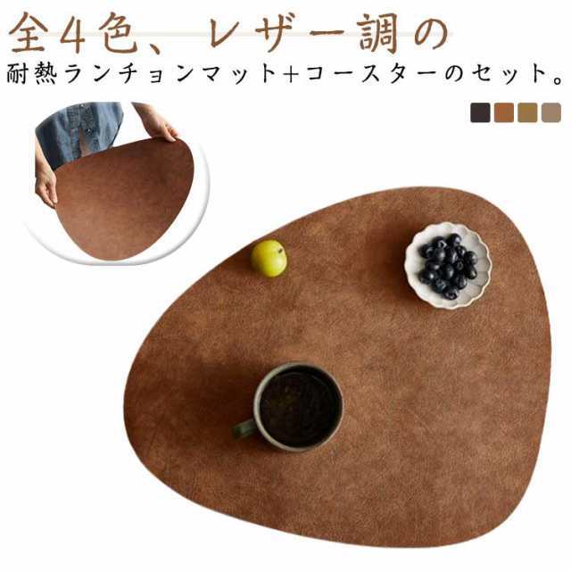 異形 ランチョンマット 北欧 レザー調 コースター付き おしゃれ 2点セット ランチマット テーブルマット テーブルクロス 撥水 ランチョン マット 敷物 熱遮断 西洋料理マット コーヒーマット レストラン用 ホテル用