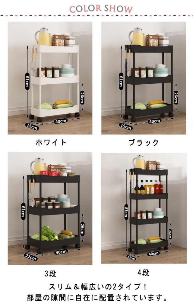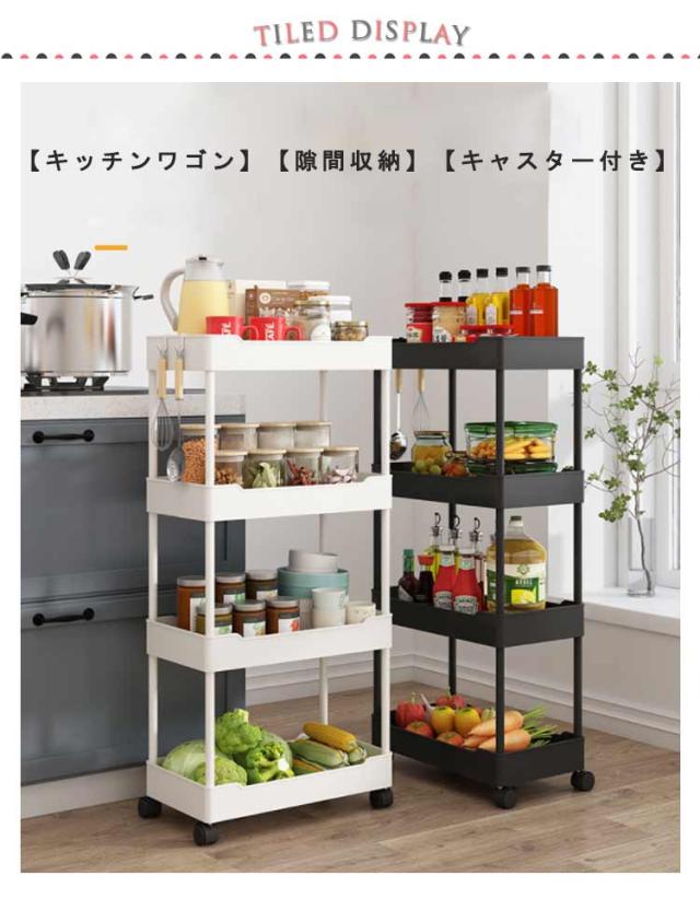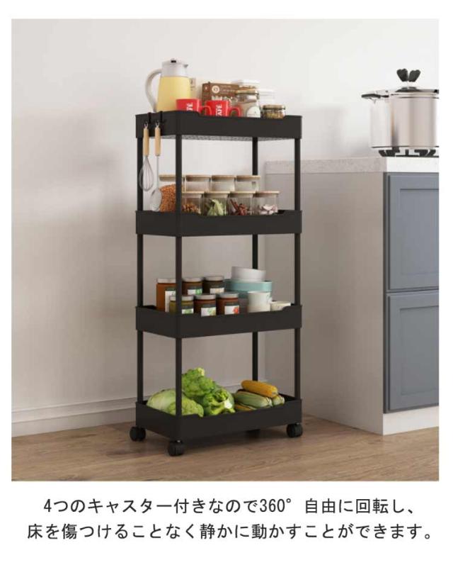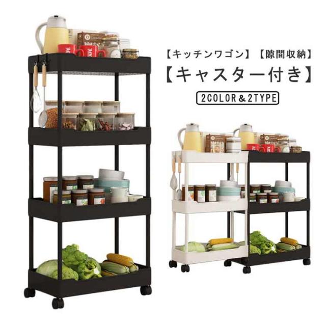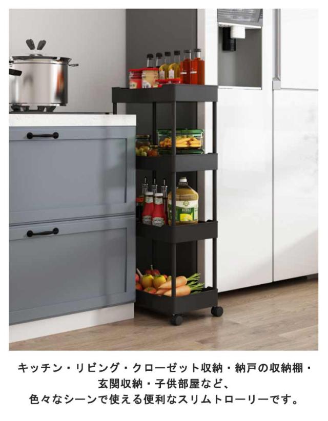 スリムトローリー 3段/4段 スリム 隙間収納 すきま収納 キッチンワゴン キャスター付き 隙間ラック 収納ワゴン 台所 ストック収納 スリム収納 浴室 食品 調味料 組立簡単 省スペース 送料無料