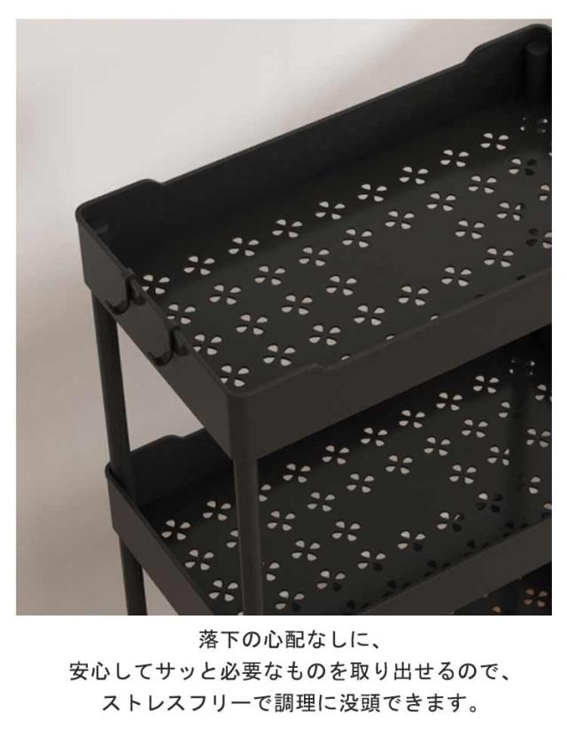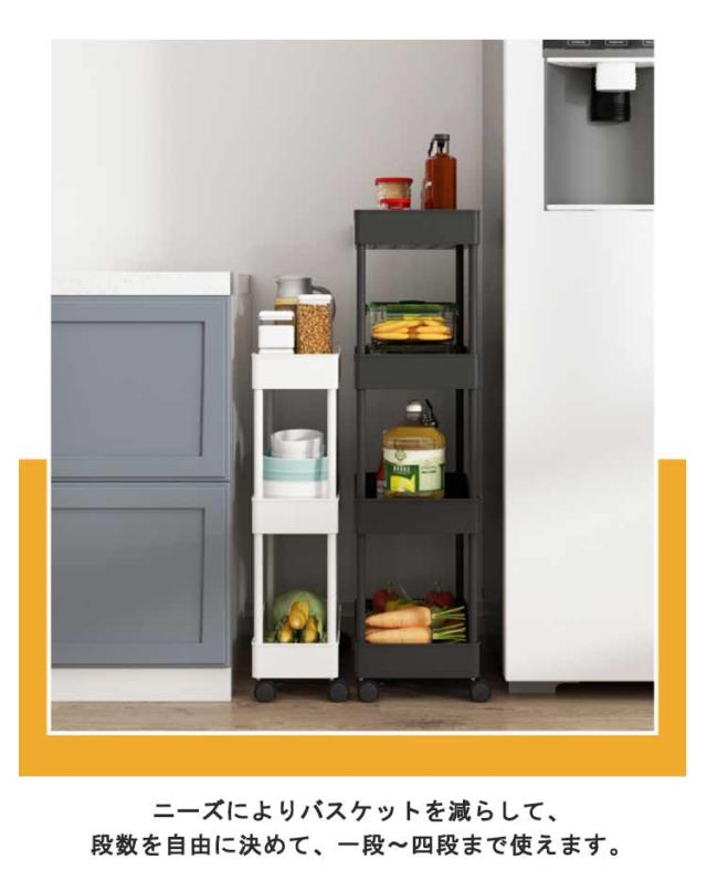 | 【キッチンワゴン】【隙間収納】【キャスター付き】 ちょっとした隙間が統一感ある収納スペースに早変わり! スリム&幅広いの2タイプ!部屋の隙間に自在に配置されています。 ニーズによりバスケットを減らして、段数を自由に決めて、一段?四段まで使えます。 4つのキャスター付きなので360°自由に回転し、床を傷つけることなく静かに動かすことができます。 バスケット型はメッシュ状なので、通気性が抜群で埃も溜まりにくいです。 落下の心配なしに、安心してサッと必要なものを取り出せるので、ストレスフリーで調理に没頭できます。 ワゴンの耐荷重が高いので、ボトルなどの重たい物も安心して収納します。 キッチン・リビング・クローゼット収納・納戸の収納棚・玄関収納・子供部屋など、色々なシーンで使える便利なスリムトローリーです。 | |