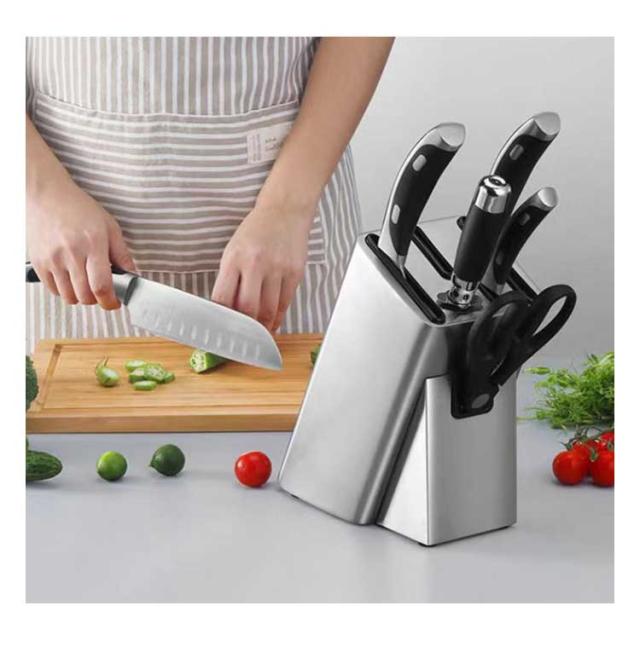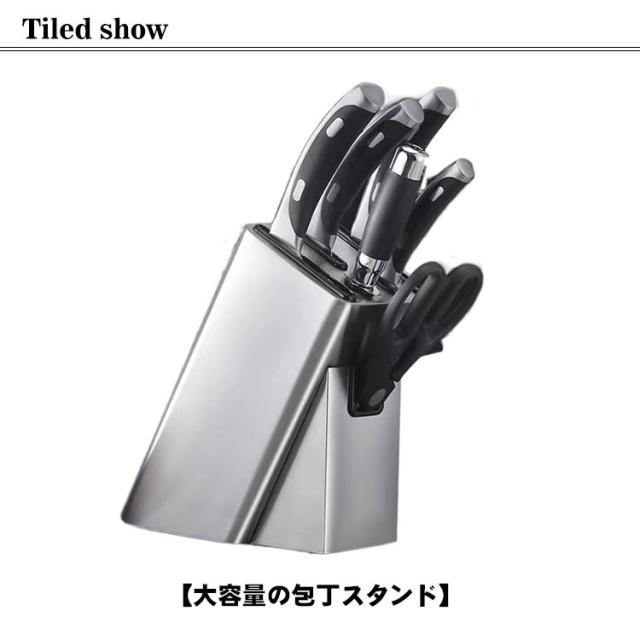 | 【包丁スタンド】【ステンレス製】【水切り】【水洗い可】 【大容量の包丁スタンド】 ・包丁やキッチンバサミが収納可能 ・水切りしやすい排水溝付き ・丈夫でさびにくいステンレス製 【ステンレス製包丁スタンドの特徴】 ・水洗いできるから衛生的 ・スタイリッシュ、モダンなお洒落な作りに仕上げ ・底部には滑り止めが付いており安定性がアップ ・汚れがつきにくい 【多種類対応】 収納ラックの開け口は6種類あり、普段に使う包丁類、ナイフやはさみ等、基本的には収納可能 | |