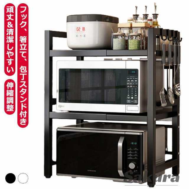 ラック 伸縮 レンジラック キッチンラック レンジ上 レンジ棚 3段 キッチン収納 おしゃれ シンプル 北欧 スリム トースター ラック 電子レンジ台 キッチンカウンター上収納 キッチン用品 台所収納 伸縮キッチンラック 2段タイプ ホワイト ブラック
