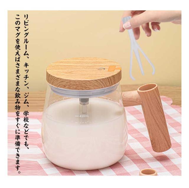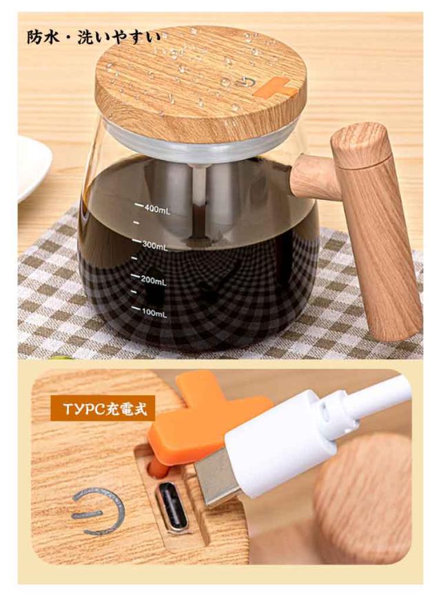 | 【自動ミキサーカップ】【400ml】【充電式 / 電池式】 コーヒー、紅茶、ホットチョコレート、スープなど、ボタンを押すだけでおいしいドリンクを簡単に作ることができます。 スプーン不要で汚れの心配もなく、いつでもどこでもお好みの味が楽しめます。 リビングルーム、キッチン、ジム、学校などでも、このマグを使えばさまざまな飲み物をすぐに準備できます。 お手入れも流水ですすぐだけでとても便利です。 お気に入りの飲み物を素早く簡単に準備できます。 ポイント: 耐熱ガラス 目盛り付き 防水・洗いやすい 人間工学に基づいたデザイン 快適な木目調ハンドル&ふた 取り外し可能 TYPC充電式 2回押す:起動する 1回押す:電源OFF | |