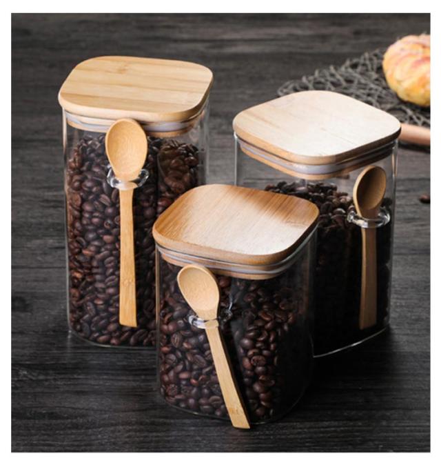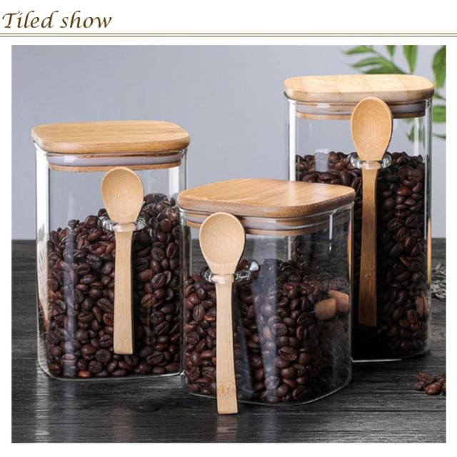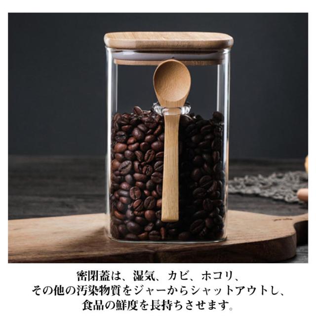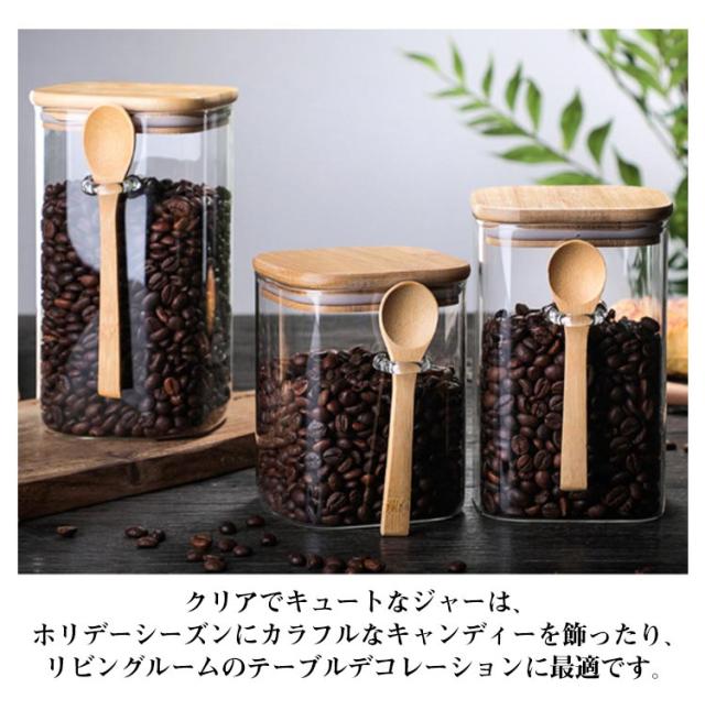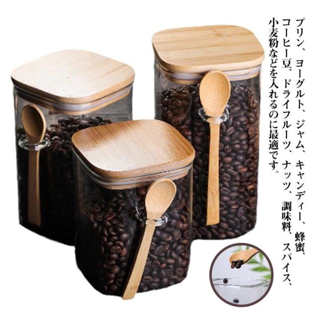 透明 ガラスキャニスター 珈琲キャニスター 3個セット ガラス 保存容器 密封 保存瓶 紅茶収納 スプーン付き 砂糖 コーヒー豆保存容器 密封ビン 茶筒 茶入 お菓子 茶葉 調味料入れ 香料