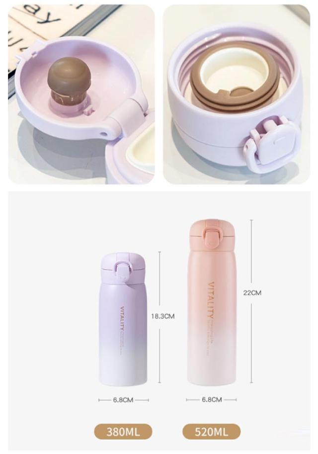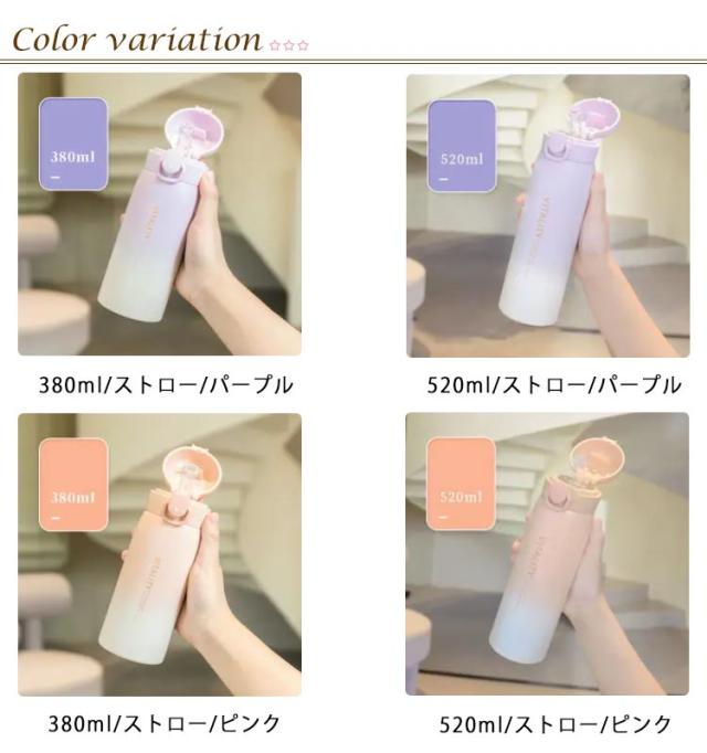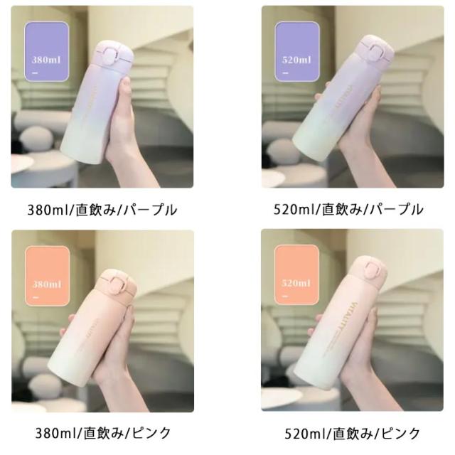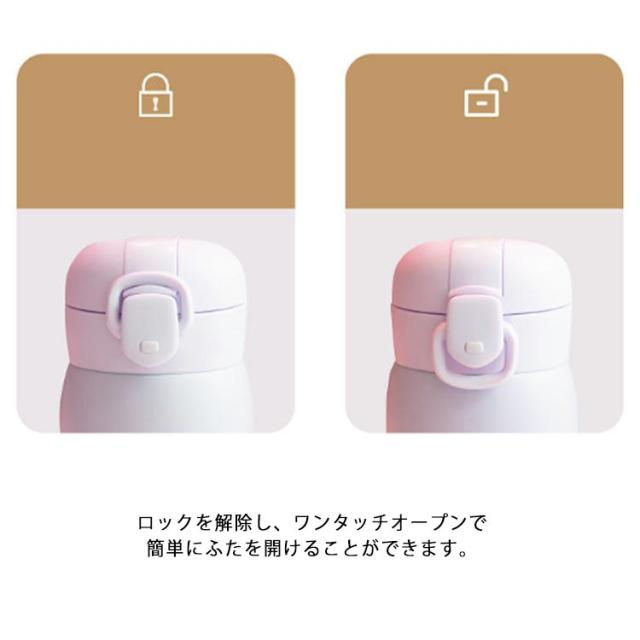 | 選べる2容量・タイプ、可愛い保冷保温水稲 真空構造で軽量・コンパクト、スタイリッシュな保冷ステンレスボトル。 学校用の水筒や部活、スポーツ、外での営業仕事や移動が多い方にもおすすめ。 ロックを解除し、ワンタッチオープンで簡単にふたを開けることができます。 漏れ防止と安全ロック!逆さにしても漏れにくく、勝手にフタが開かないロック機能付き、カバンに入れて持ち歩いても、中身がこぼれず安心。 選べる2タイプ、ニーズに合わせて選びいただけるのがうれしい♪ | |