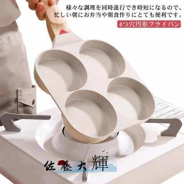 目玉焼きフライパン 仕切り付き 4穴フライパン 四角型 お弁当 作り 4つ穴円形フライパン マルチパン 卵焼きフライパン 朝食フライパン 分