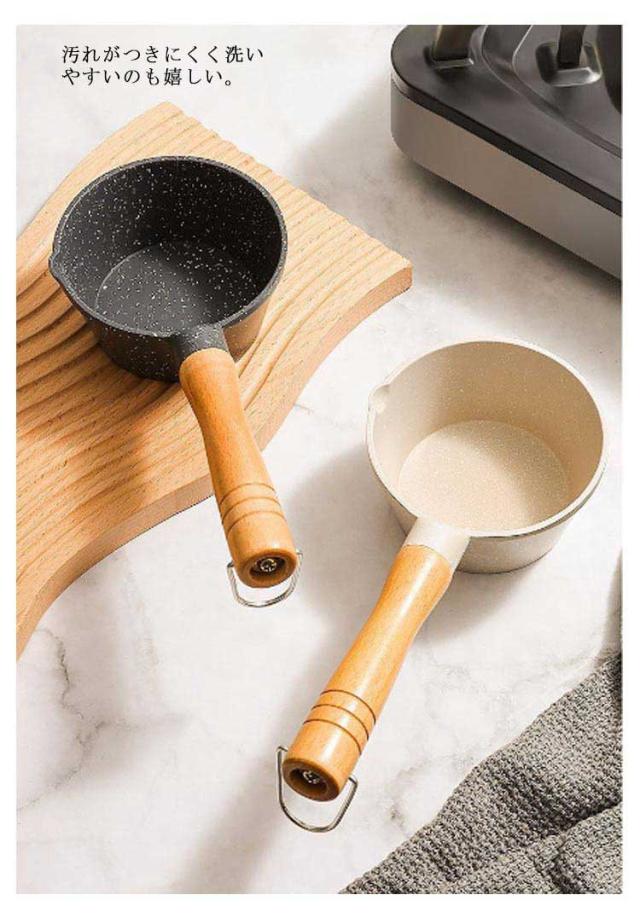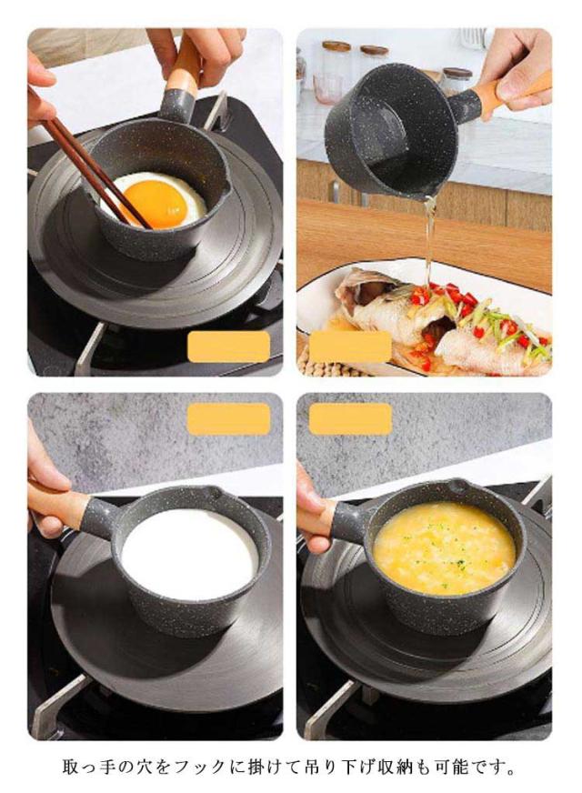 | 1つあれば便利な深型の多用途片手鍋。 ホットオイルとミルク用のキッチンミルクパン。 汚れがつきにくく洗いやすいのも嬉しい。 取っ手の穴をフックに掛けて吊り下げ収納も可能です。 ハンドルが長めにしてあり、焦げ付きにくくなっています。 | |
