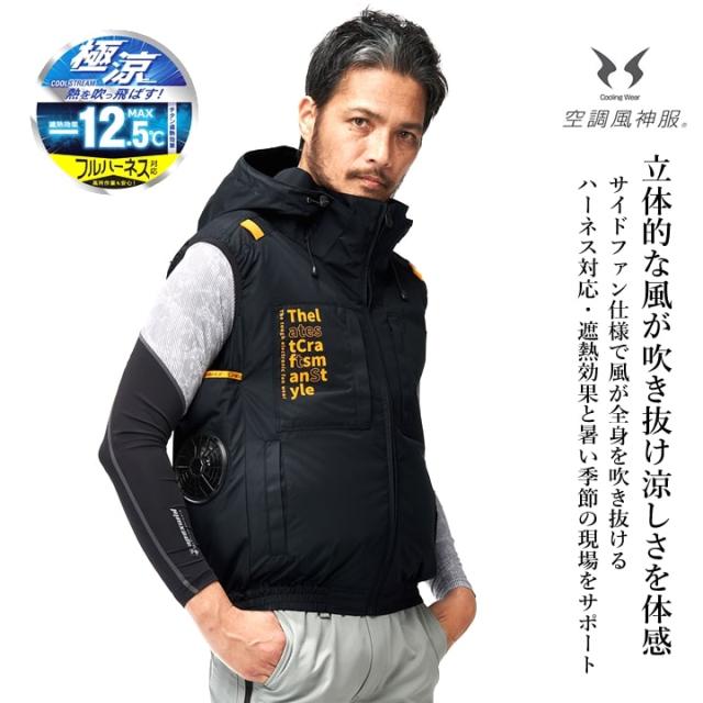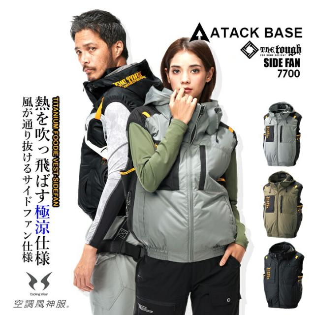 【即日発送】空調ウェア 2025年 空調風神服 空調ウェア サイドファン ベスト【服のみ】ファン対応 7700 チタン加工 男女兼用 熱中症対策 撥水加工 アウトドア スポーツ 作業着 作業服 電動ファン対応作業服 アタックベース