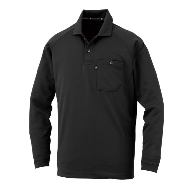長袖 ポロシャツ リラックスフィット ブラック SS AS-1758 [長袖シャツ 上着 消臭 速乾 メッシュ 作業着 コーコス信岡]