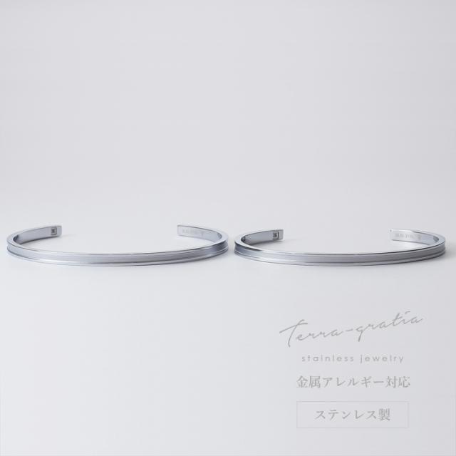 ペアバングル カップル 刻印 つけっぱなし 金属アレルギー対応 ステンレス シークレットダイヤモンド 大人 シンプル マットライン シルバーカラー テラグラティア Terra-gratia PairBangle lstb013sv_sv_pair