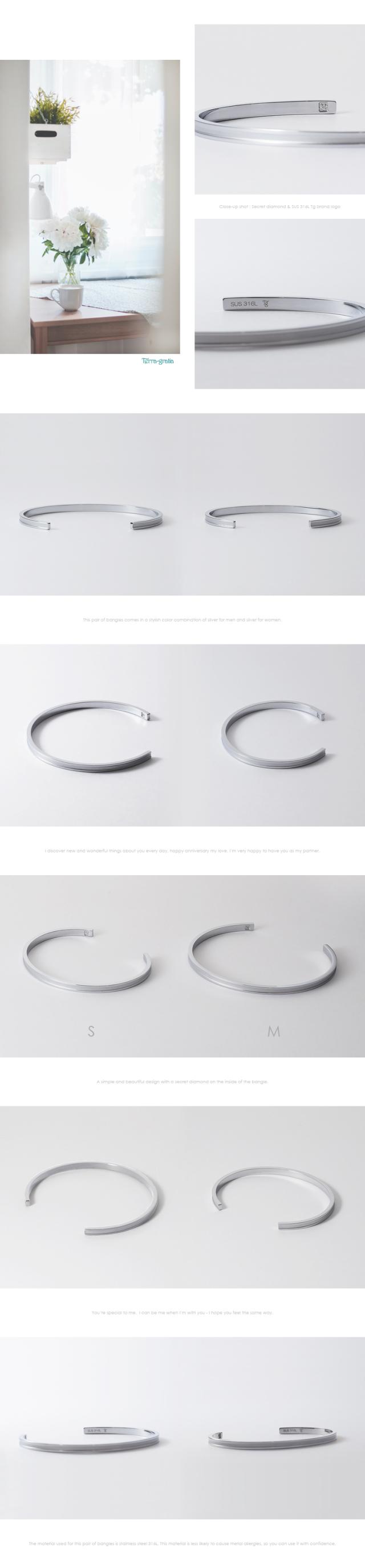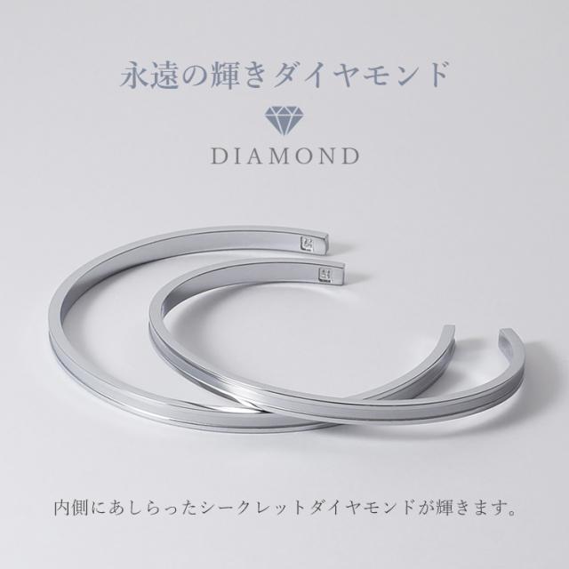 センターにマット仕上げのラインが入った大人シンプルなペアバングル。 バングル内側にあしらったシークレットダイヤモンドが輝きます。 メンズ、レディース共にシルバーカラーになります。 バングル内側には無料で名入れ刻印をお入れいたします。