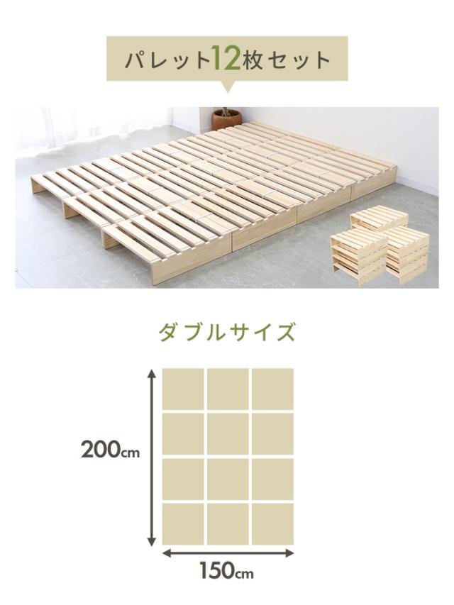 すのこベッド ダブル 12枚 北欧 天然木 パレットベッド ベッドフレーム おしゃれ お掃除ロボ対応 カスタム 分割式 正方形 通気性 すのこ 木製 無垢材 組み立て簡単 ベッド ファミリーベッド ローベッド 低ホルムアルデヒド 連結ベッド 送料無料