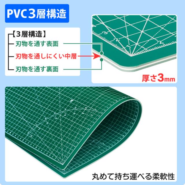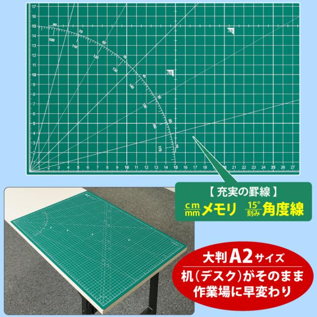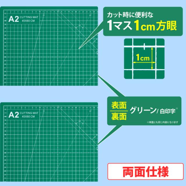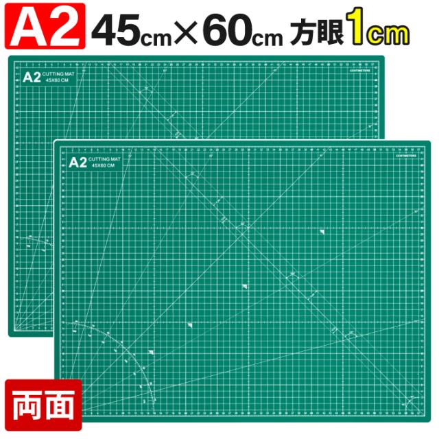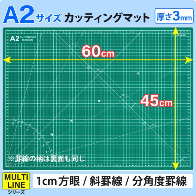 カッティングマット A2 サイズ 45cm x 60cm x 3mm 【1cm方眼】特大 両面メモリ 業務用 工作 カッターマット デスクマット 緑 グリーン 両面 両面目盛り 大判 切り出し 造形 裁縫 型紙 作業台 方眼 プラモデル 450 600 450mm 600mm 3mm 0.45m 0.6m (MULTI LINEシリーズ)