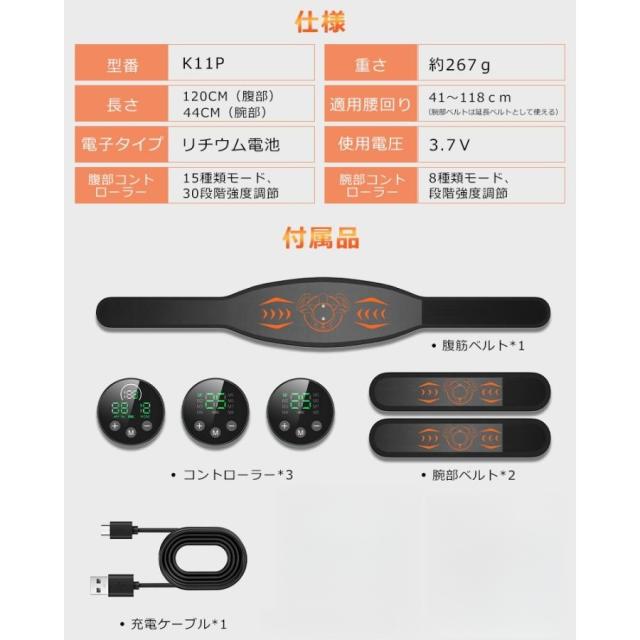 セット内容:EMS腹筋ベルト*1 腕部ベルト*2 コントローラー*3