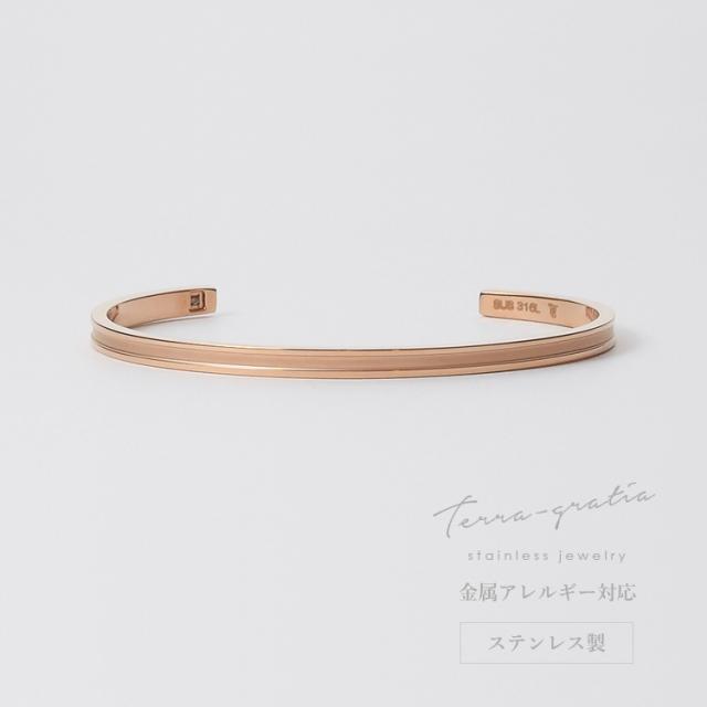バングル レディース 刻印 つけっぱなし 金属アレルギー対応 ステンレス シークレットダイヤモンド 大人 シンプル マットライン ローズゴールドカラー lstb013rg