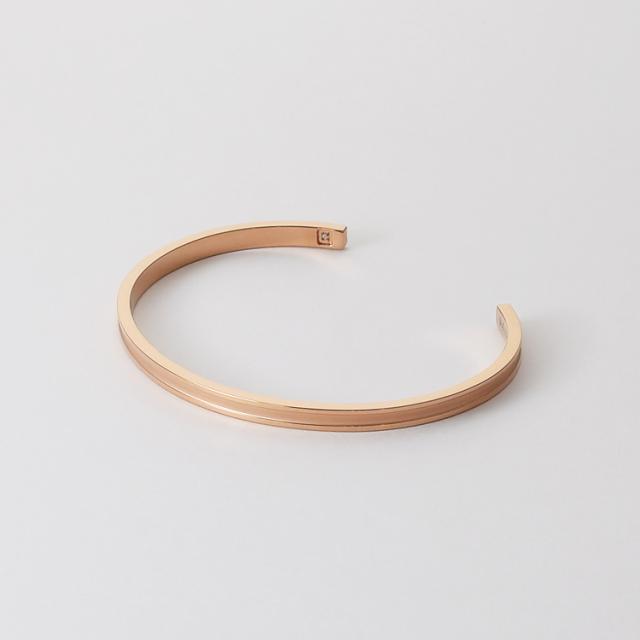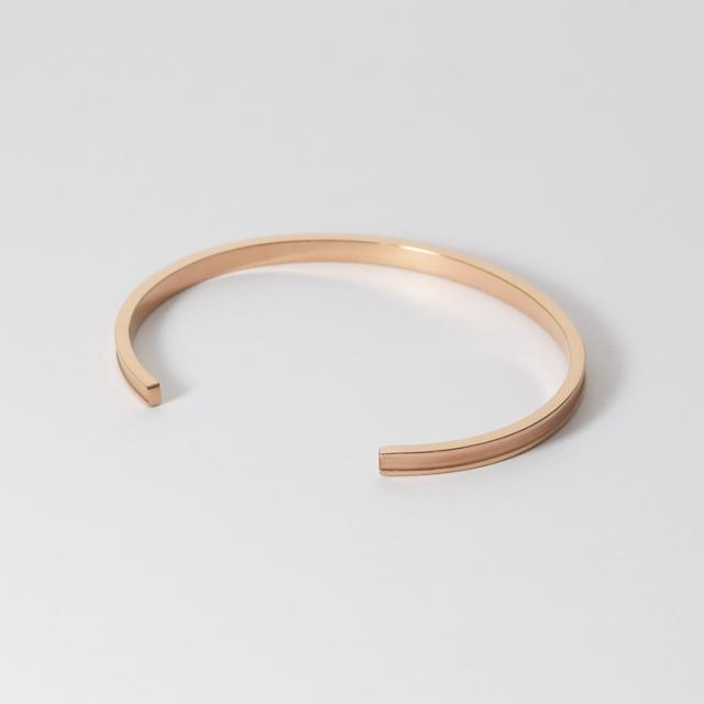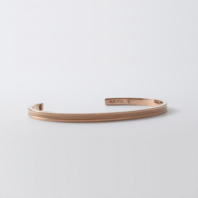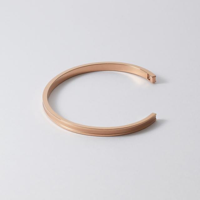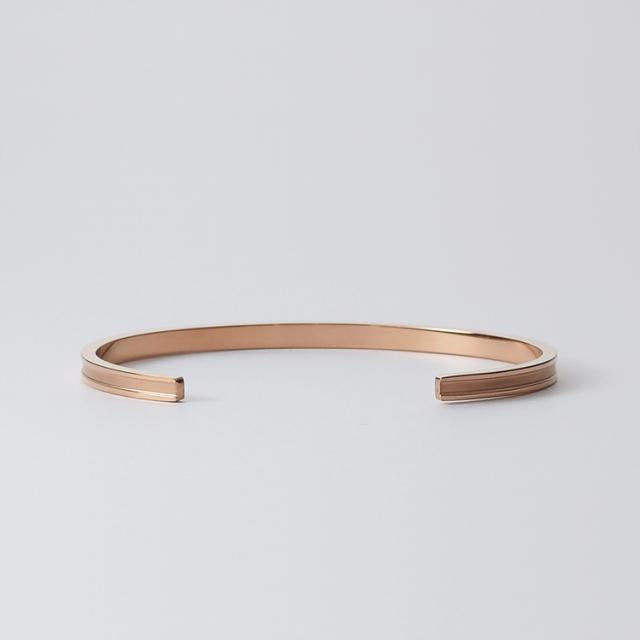 センターにマット仕上げのラインが入った、ローズゴールドカラーの大人シンプルなバングル。