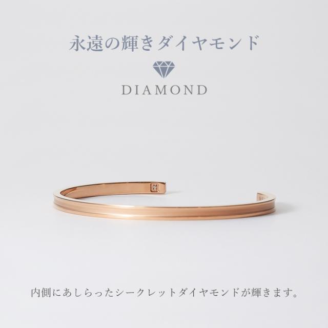 センターにマット仕上げのラインが入った、ローズゴールドカラーの大人シンプルなバングル。 バングル内側にあしらったシークレットダイヤモンドが輝きます。 バングル内側には無料で名入れ刻印をお入れいたします。