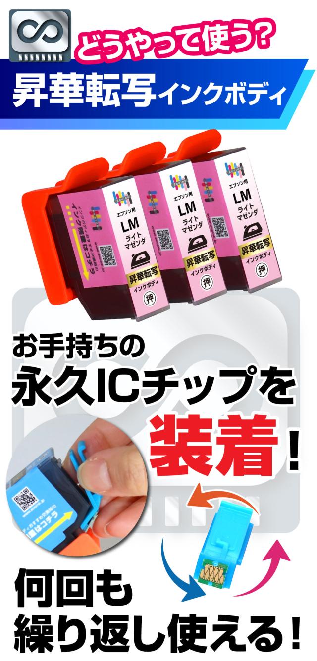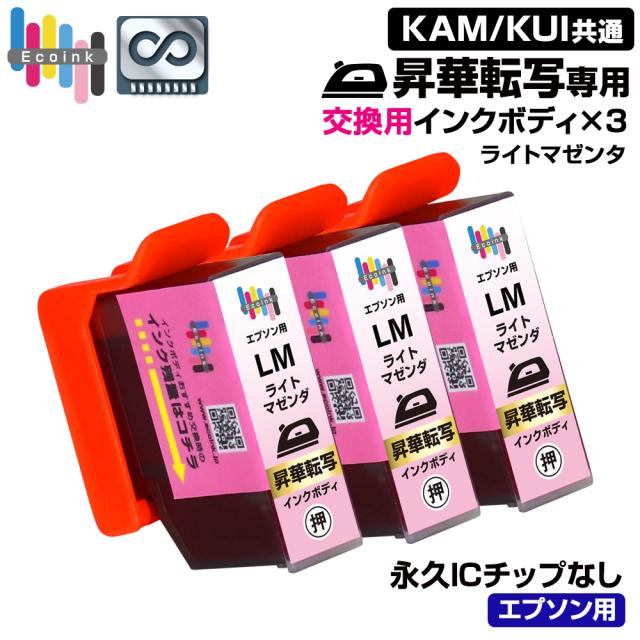 【永久ICチップ 交換用ボディ LM ライトマゼンタ×3個】 昇華転写 専用 インクカートリッジ ライトマゼンタ単品 LM【こちらの製品だけでは使用できません。】KAM KUI オリジナル エプソン用 ブラック 昇華 熱転写 グッズ カスタム