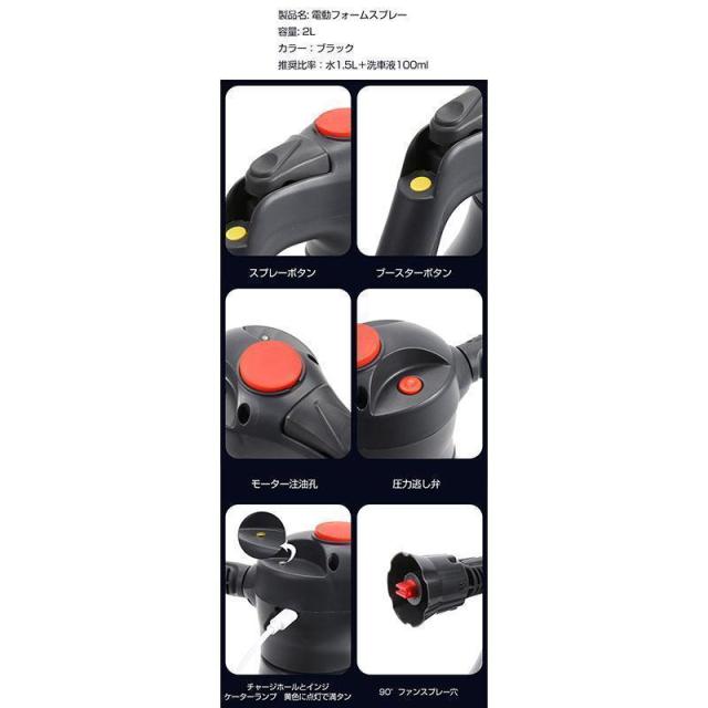 電動フォームガン 洗車 自動泡噴霧器 蓄圧式 洗車泡フォームガン 泡ガン フォームスプレー 洗車 2L大容量 USB充電式 家庭用泡噴霧器