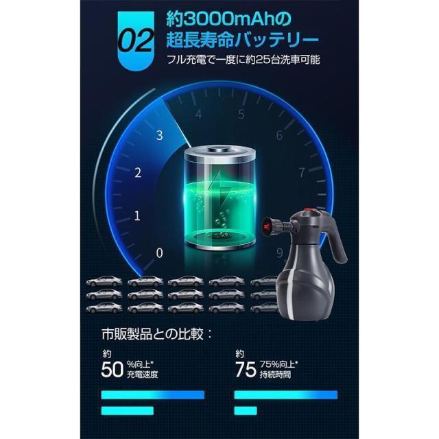 高圧洗浄機、フォームガン、庭のホースは必要なく、プラグも必要ないので、いつでもどこでも車を洗うことができます。