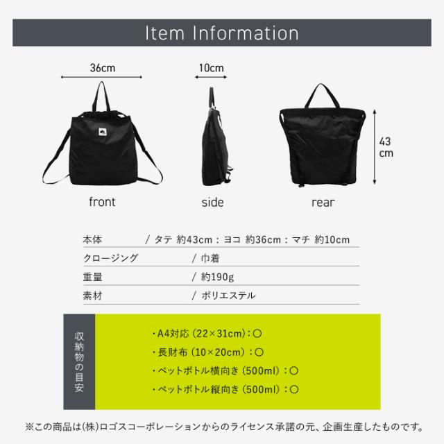 LOGOS Park ロゴスパーク ナップサック ナップザック トートバッグ リュックサック ジム バッグ スポーツ 多用途 2WAY メンズ 男女兼用 おしゃれ プレゼント ラッピング無料
