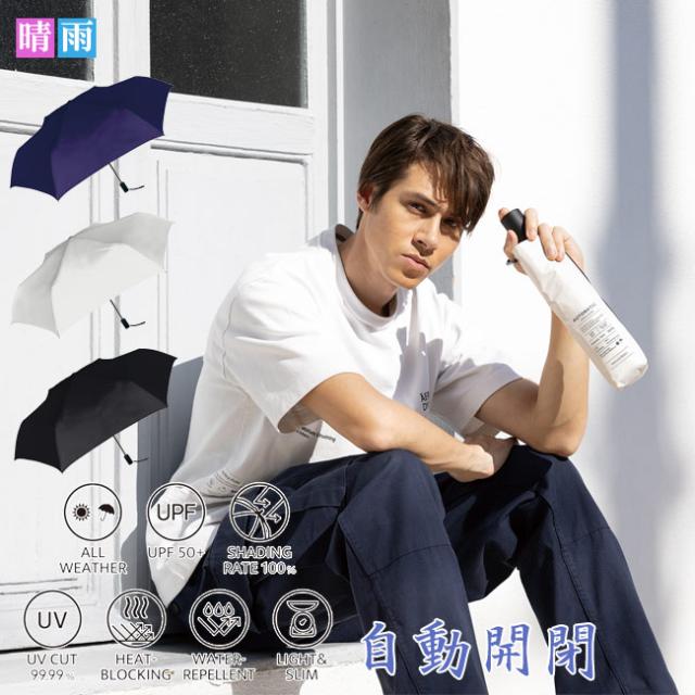 日傘 折畳 UV58cm 自動開閉 825-020 晴雨兼用 UPF50 メンズ 軽量 完全遮光 ブラックコーティング加工 父の日 ギフト敬老の日