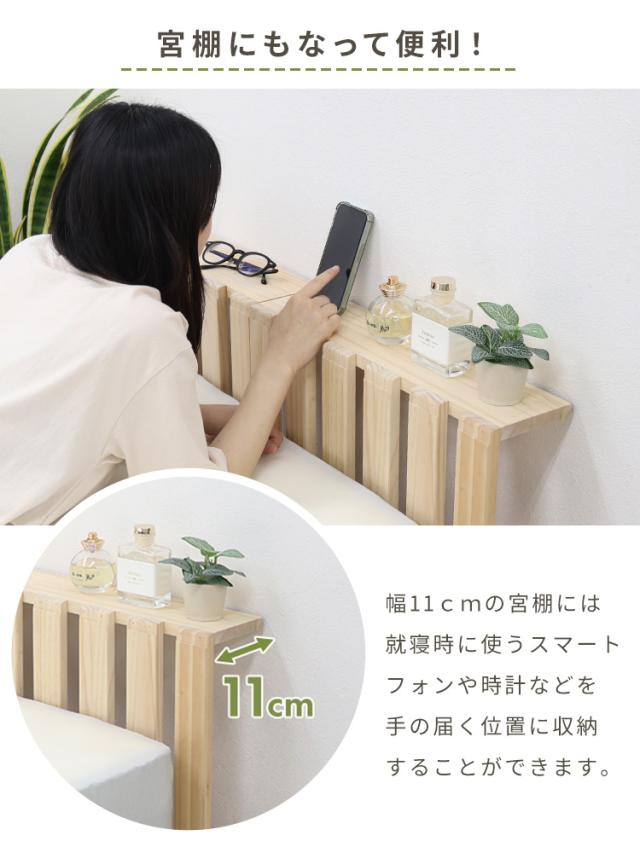 パレット構造だから、シングル・ダブル・キングサイズなどお好みのサイズにアレンジしたり、 宮棚を作ったり、自由に組み合わせて使えます。