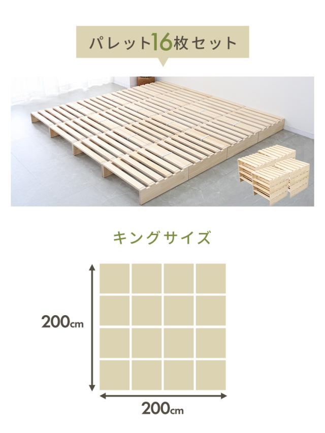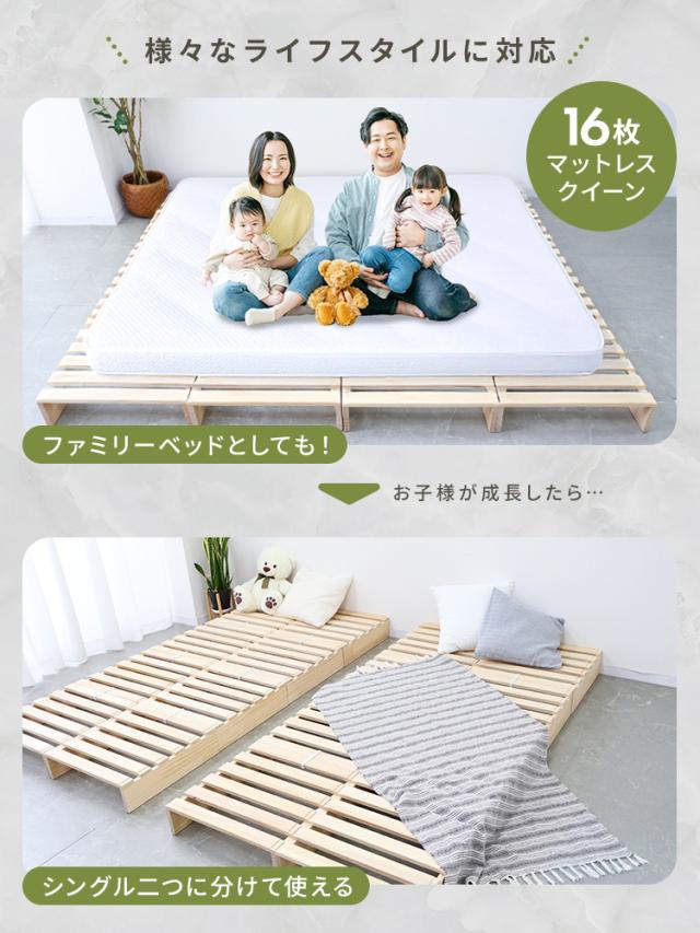 すのこベッド ダブル 16枚 天然木 北欧 パレットベッド ベッドフレーム おしゃれ お掃除ロボ対応 カスタム 分割式 正方形 通気性 すのこ 木製 無垢材 組み立て簡単 ベッド ファミリーベッド ローベッド 低ホルムアルデヒド 連結ベッド 送料無料