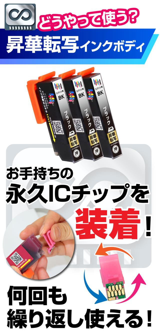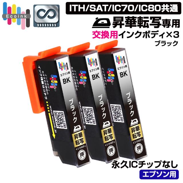 【永久ICチップ 交換用ボディ BK ブラック×3個】昇華転写 専用 インクカートリッジ ブラック単品 BK【こちらの製品だけでは使用できません。】ITH SAT IC70 IC80 オリジナル エプソン用 ブラック 昇華 熱転写 グッズ カスタム