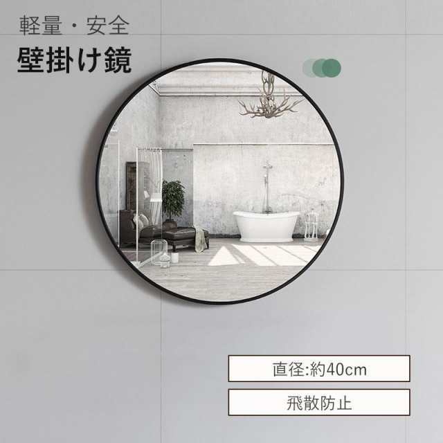 鏡 壁掛け ミラー 飛散防止 ウォールミラー 40cm 壁掛け 丸型 姿見 姿見鏡 全身 おしゃれ 洗面所 アンティーク ミラー インテリア