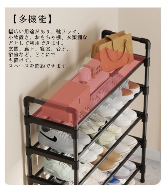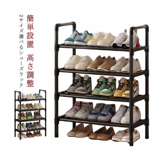 | 2サイズ選べるシューズラック 【簡単設置】 組み立て式なので、分解・再組み立てが可能です。また、軽くて道具不要で組み立て可能なので、女性一人でも簡単に設置ができます。 【高さ調整】 ポールを取り外していただき高さ調整が可能なので、ハイカットスニーカーよブーツなども収納可能! 【多機能】 幅広い用途があり、靴ラック、小物置き、おもちゃ棚、衣類棚などとして利用できます。 玄関、廊下、寝室、台所、浴室など、どこにでも置けて、スペースを節約できます。 | |