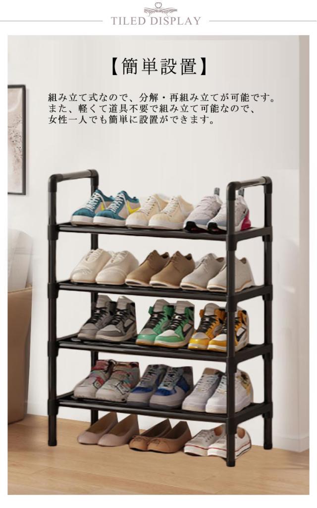 靴箱 S L 薄型 簡易シューズラック スリム 省スペース 2サイズ くつ 下駄箱 シューズボックス シューズケース 収納 玄関 オシャレ 4段 整理 一人暮らし サンダル ブラック スニーカー ブーツ 靴