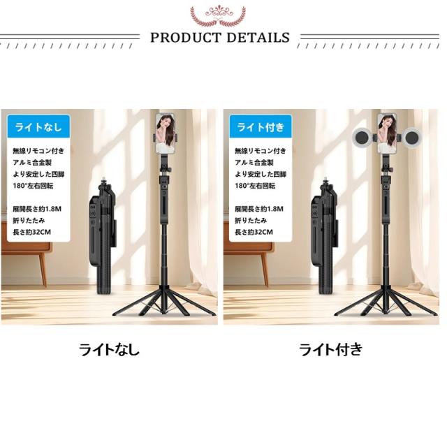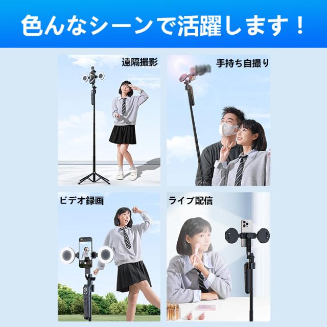 三脚 スマホ用 自撮り棒 リモコン 自動顔追跡 AI搭載 LEDライト セルカ棒 bluetooth 三脚付き スマホスタンド ライブ配信用 360°