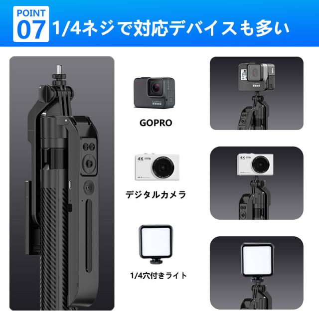 ・1/4穴のGOPRO/デジタルカメラなどを取り付けられる