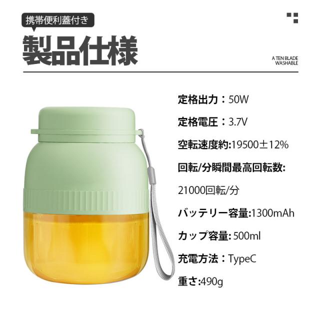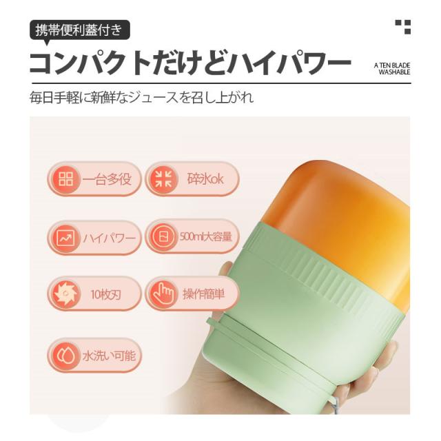 ミキサー 1台4役 ジューサー 小型 丸洗い可 500ML コードレス スムージー コードレスミキサー 携帯ジューサー 氷対応 保