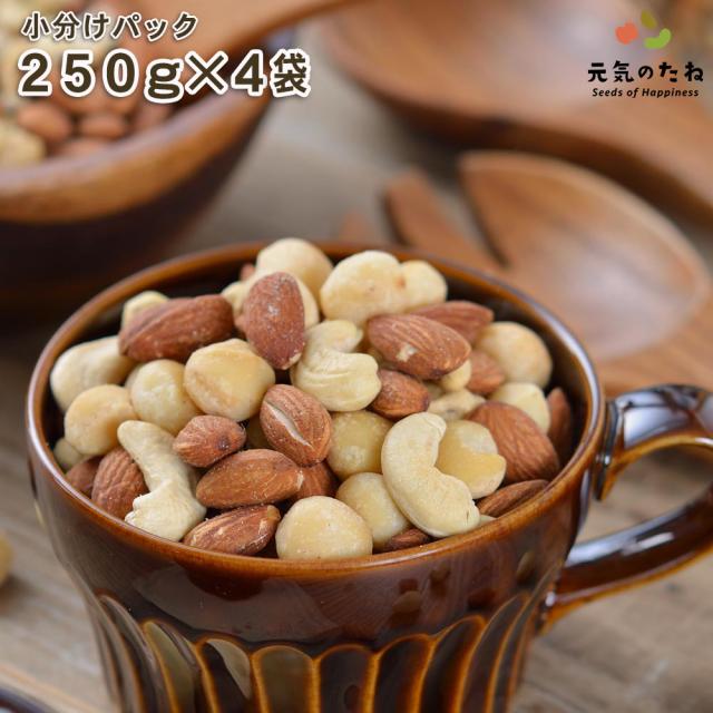 小分け 4×250g 塩味 まごころ ミックスナッツ 無添加 素焼き 3種のナッツ アーモンド カシューナッツ マカダミアナッツ お取り寄せ 送料無料