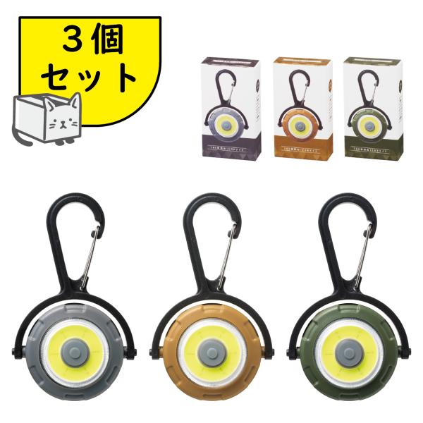 3個セット 360度回転可能な明るいCOBカラビナライト 8段階の固定ヶ所で360度回転 点灯切替 3色取混ぜ ボタン電池付き カラビナ付き 非常時・アウトドア用