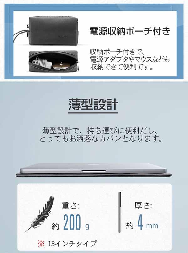 | 特徴 | 【高品質材料】快適なPUレザー素材で作られた外観は、綺麗で高級感のあふれる仕様となっております。耐摩耗性であり、清掃が容易で、デザインが良く手に馴染みます。 【保護力】裏地はソフトなフランネル生地がつき、不意な落下や衝撃を吸収し、デバイスが傷つかないように保護します。 【耐衝撃】衝撃吸収パッドがあり、絹のような手触りのふわふわで、ノートPCをすり傷、衝撃からしっかりと保護します。 【 男女兼用 ・高級感溢れ】シンプルで高級感溢れるデザイン、きれいなカラーは老若男女問わず、通勤・旅行・日常生活の様々なシーンに対応します。お友達や家族にもギフトとしておすすめます。 【商品品質】 商品の管理・品質については万全を期しておりますが、万一ご注文と異なる商品・不良品が届いた場合は 商品到着後7日以内にお問い合わせフォームにてお名前・受注番号などをご記入の上、ご連絡頂いた場合のみ対応となります。 | |||||
