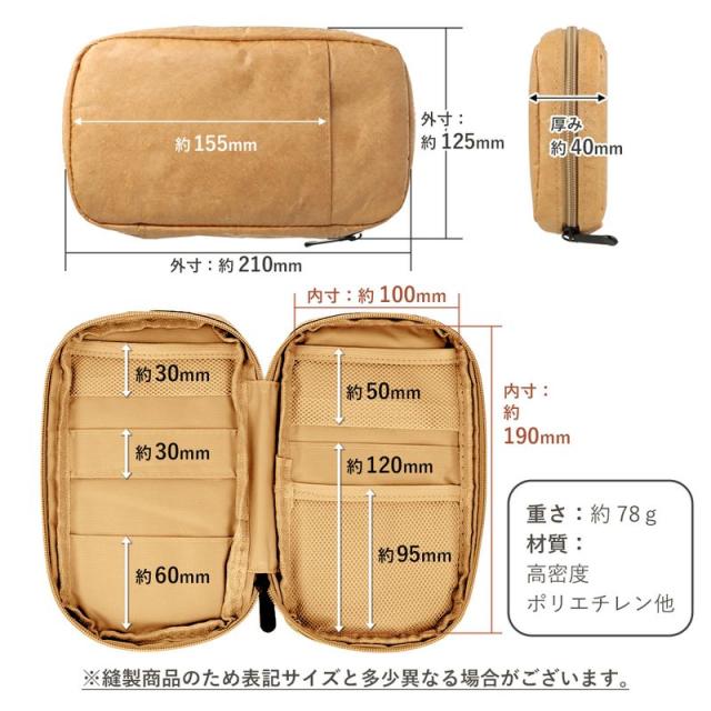 マルチポーチ タイベック ポーチ 収納 A6 B6 文房具 モバイルグッズ ケース 化粧 コスメ 大容量 多機能 ファスナー 防水 軽量 壊れにくい 小物入れ 横長 仕切り 大人 シンプル カジュアル 紙 ペーパーライク 4色 ネイビー グレー グリーン ベージュ
