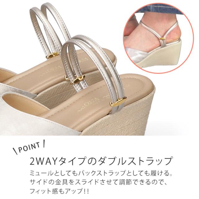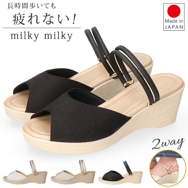 サンダル レディース ストラップ ミュール 2way 疲れない 歩きやすい 履きやすい 脱げない 痛くない 柔らかい 低反発 ウェッジソール 厚底 かかとあり かかと付き かかとなし つっかけ おしゃれ 外反母趾 日本製 通勤 シューズ 靴 ミルキーミルキー 1517