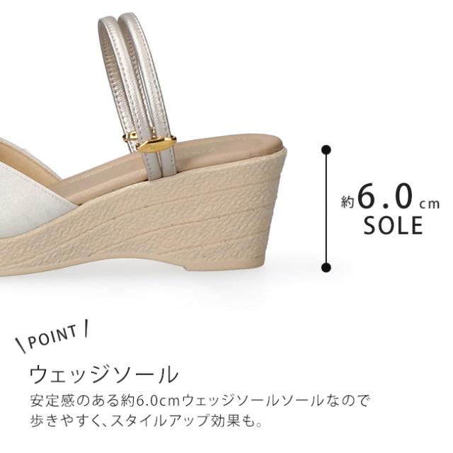 安定感のある約6.0cmウェッジソールで歩きやすく、スタイルアップ効果も
