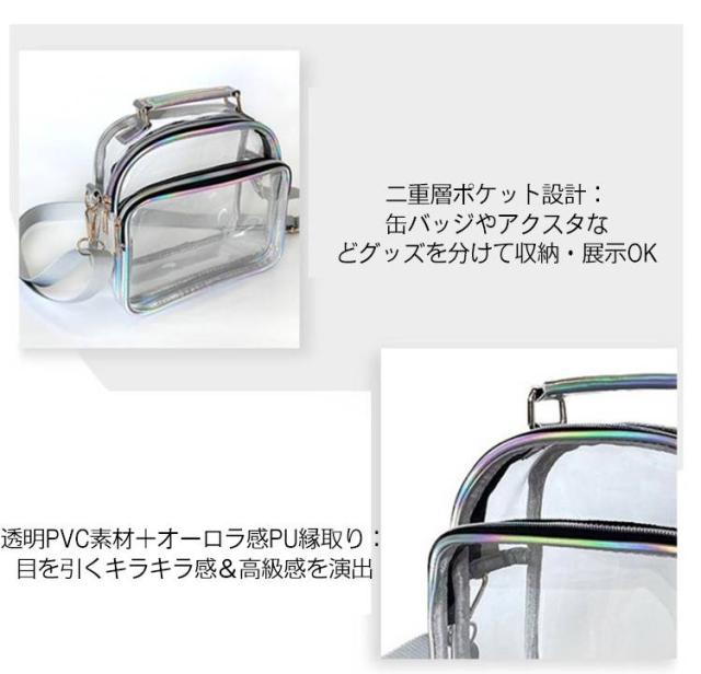 | 【クリア×ラメオーロラ縁取り】15cmぬい対応ぬいぐるみバッグ コンパクトでも存在感抜群!推しぬいにぴったりな個性派クリア推しポーチ? 10cm/15cmぬいぐるみに対応:小さな“推し”を可愛く守るぴったりサイズ 透明PVC素材+オーロラ感PU縁取り:目を引くキラキラ感&高級感を演出 二重層ポケット設計:缶バッジやアクスタなどグッズを分けて収納・展示OK ショルダー・手提げ2WAY仕様:シーンやコーデに合わせて使い分け 調節可能ショルダーストラップ:70?140cmの範囲で自由に調整 個性的でかわいい、イベントにも普段使いにもおすすめ◎ | |