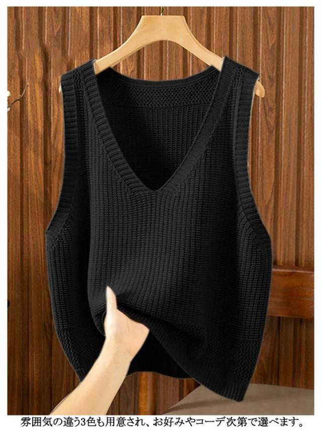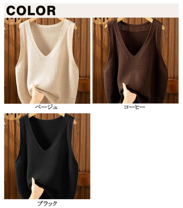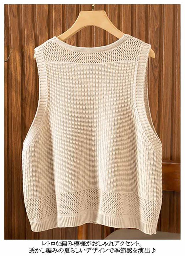 ニット Vネック ゆったり 透かし編み ジレ 春夏 夏ベスト 大きいサイズ ニットベスト ベスト 無地 サマーニット おしゃれ レディース 重ね着 レイヤード ノースリーブ トップス ミドル丈 冷房対策 チョッキ ニット シンプル 体型カバー カジュアル 大人可愛い