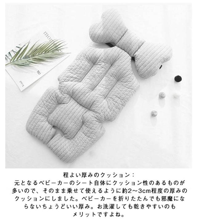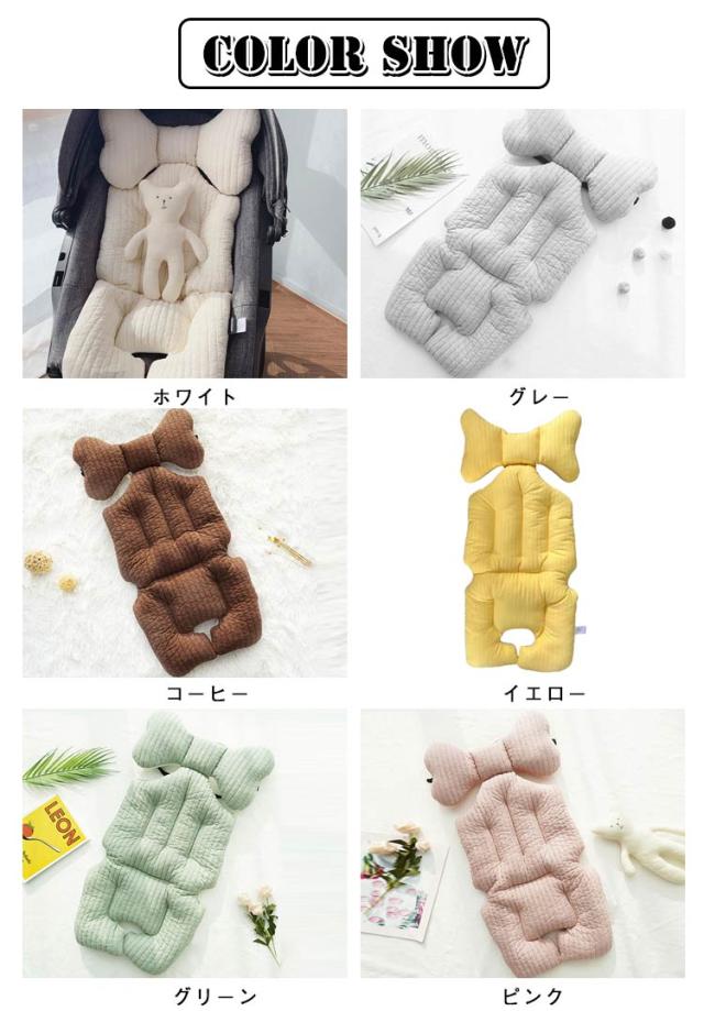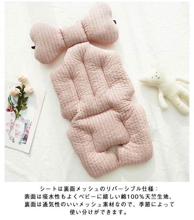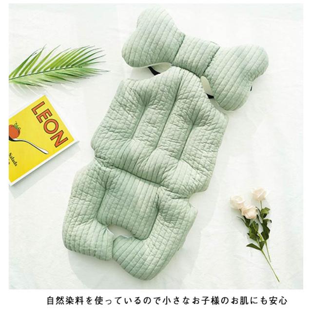 | 表面は綿100%天竺生地、裏面はメッシュ素材のベビーカークッション。オールシーズン使用可 シートは裏面メッシュのリバーシブル仕様:表面は吸水性もよくベビーに嬉しい綿100%天竺生地、裏面は通気性のいいメッシュ素材なので、季節によって使い分けができます。 程よい厚みのクッション:元となるベビーカーのシート自体にクッション性のあるものが多いので、そのまま乗せて使えるように約2?3cm程度の厚みのクッションにしました。ベビーカーを折りたたんでも邪魔にならないちょうどいい厚み。お洗濯しても乾きやすいのもメリットですよね。 ヘッドレスト固定ベルト付 自然染料を使っているので小さなお子様のお肌にも安心 おしゃれなニュアンスカラー | |