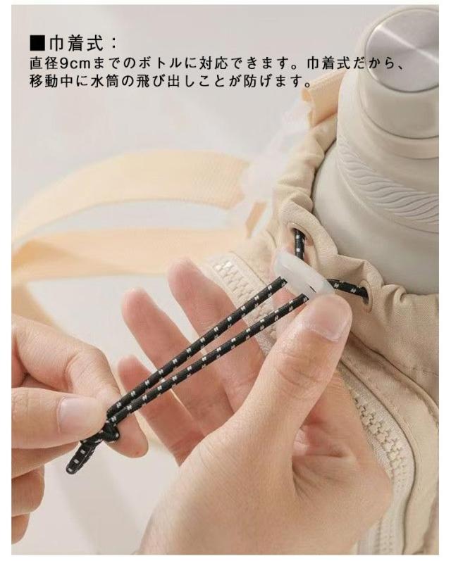 | 巾着式水筒カバー+ファスナー付きスマホポーチのショルダーバッグ。【長さ調節できるストラップ付き】 ■巾着式:直径9cmまでのボトルに対応できます。巾着式だから、移動中に水筒の飛び出しことが防げます。 ■ファスナーポーチ付き:スマホ・スマートキー・リップなど小物入れて、これ一つでおでかけ!公園遊び・水遊び・犬のお散歩・送迎・お買い物…ちょっとしたお出かけの時に便利! ■長さ調節できるストラップ付き:最短70cm?最長125cm、子供?男性までお使いいただけます。取り外し可能だから、手提げでも、斜め掛け・肩掛けができます。 ■撥水生地:撥水加工されており、汚れた場合はサッと拭いて清潔に◎ ■落ち着いたくすみカラー:男女兼用のシンプルカラー | |