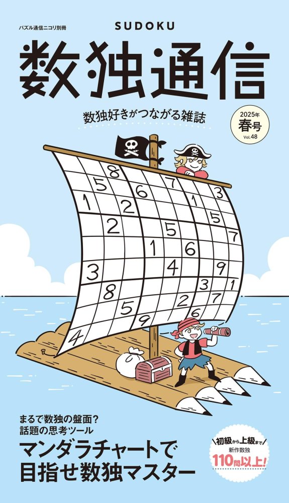 初めての方から熟練者まで楽しめる数独専門誌です。投稿作品の中から厳選された数独の新作問題を100問以上掲載。正解者全員の名前を次号で発表する「着順発表数独」や、難易度の高い問題で行き詰まったときに役立つ「難問数独お助けヒント」も好評です。さらに、数独にまつわる企画記事や最新情報、読者からのおたよりコーナーなど、読み物のページも充実。数独の魅力がぎゅっと詰まった1冊です。 |