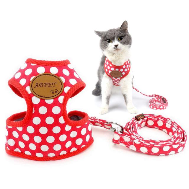 RANPHY 犬猫用ハーネス 胴輪 超小型犬 小型犬 子犬 はーねす リード セット ソフト 水玉 ドット柄 かわいい 肉球 調整可能 抜けない アジ